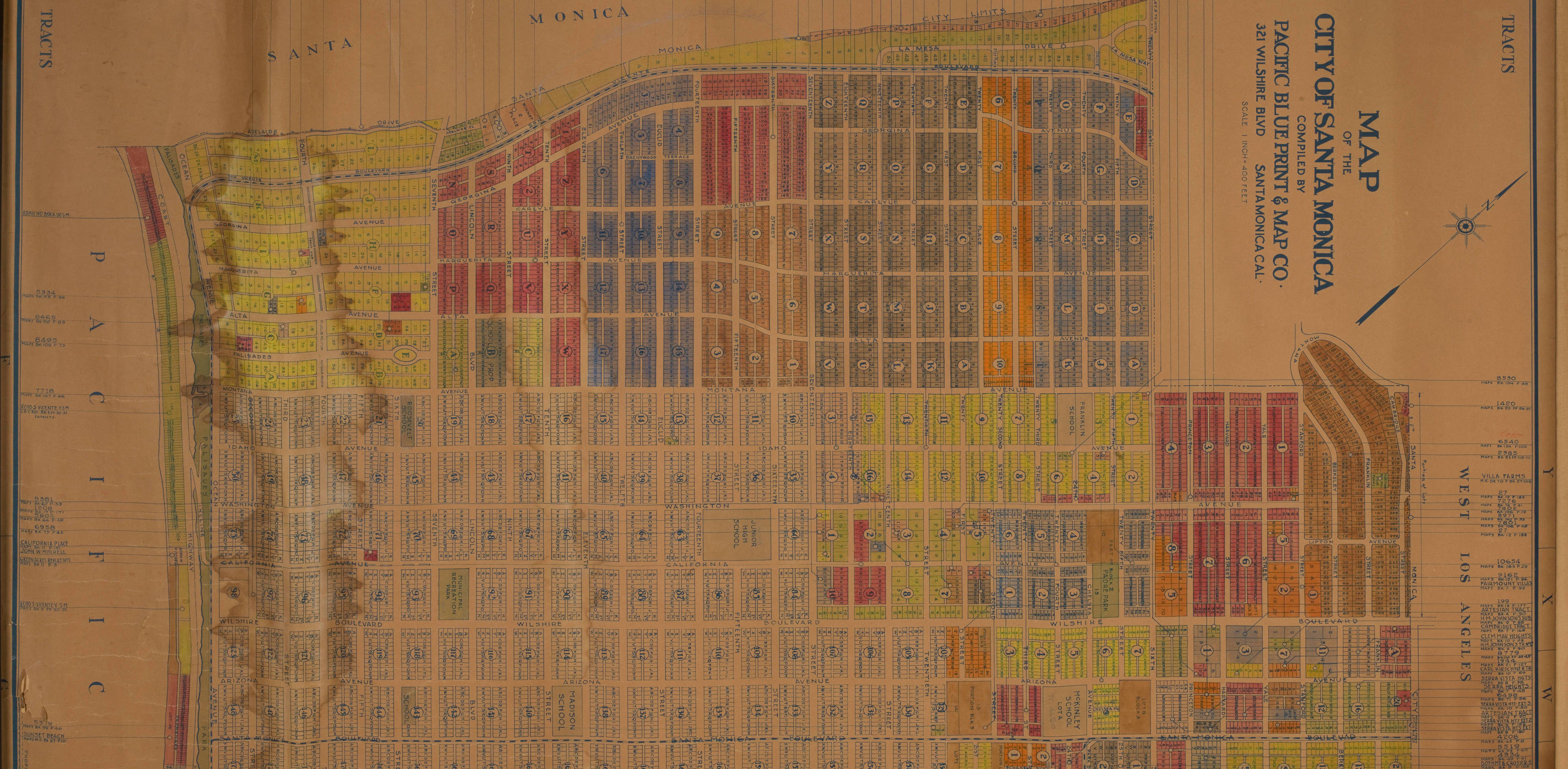 This photo shows an important subject: the terminus of Santa Monica Boulevard at Ocean Avenue in Santa Monica. This was also a major junction of LA’s famous light rail Pacific Electric metro transit street cars. The Santa Monica line – one of the city’s oldest – travelled down the middle of Santa Monica Boulevard, all the way to Beverly Hills. The right-of-way of the “Lagoon Line”, built at the turn of the century by Moses Sherman, Abbot Kinney, and the LA Pacific Railroad – still exists now as Pacific Avenue in Venice, and once traversed a continuous coastal route (including its own bridge), through Playa del Rey, El Segundo, Manhattan, and Hermosa, finally terminating in Redondo Beach.